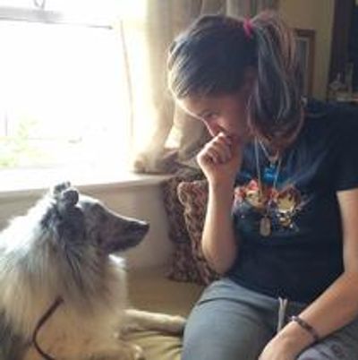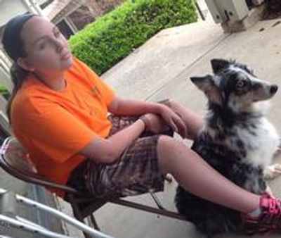"On June 25, 2010, Shelby was diagnosed with Pre B cell All (acute lymphoblastic leukemia). After enduring almost 3 years of chemo by mouth, injected into her spine, IV, and chemo injected into her thighs Shelby remains in remission. Remission does not mean cured, she still has 2 years until she is considered cured. During this time she received so many blood transfusions that we lost count. She also received multiple platelet transfusion as well as albumin. She was treated for multiple infections, pneumonia, chemical menigitis and a fungal infection that spread throughout her body. During this time Shelby came close to death but fought on. She was hospitalized over 28 times, lost her gallbladder, had surgery to clean out a fungal infection on her neck. Now for the leftovers. Shelby has AVN (avascular necrosis) in both knees and has undergone 4 knee surgeries to drill multiple holes in her femur and tibia to promote blood and regrow bone, but she has pain every day in her legs and her low back from a crack in a lumbar vertebrae. She has memory and focus issues from the IT (intrathecal chemo). Her right lung base is scarred down from the fungal infection and she has shortness of breath and chest pain with hot or humid weather (gotta love Oklahoma weather). Now to the PTSD with extreme anxiety. From everything she has had to undergone she has PTSD with extreme anxiety, she is on medication, but, she still was unable to complete a full day of school or go shopping or out to eat. After doing the research herself, we found Glad Wags and hence Shelby and Skye were paired. After completing several months of training with Marj and Skye, Shelby was able to bring Skye home. Shelby and Skye are juniors at Caney Valley High school and with Skye at her side, Shelby is able to complete 5 hours of school daily as well as shopping and daily living. Skye is at Shelby's side and the night terrors have decreased as well as just being able to start living again as a teenager. Skye has made a difference in Shelby's life and we just could not imagine Skye not being a part of our family." - Lori Truitt, Shelby Foreman's mom.