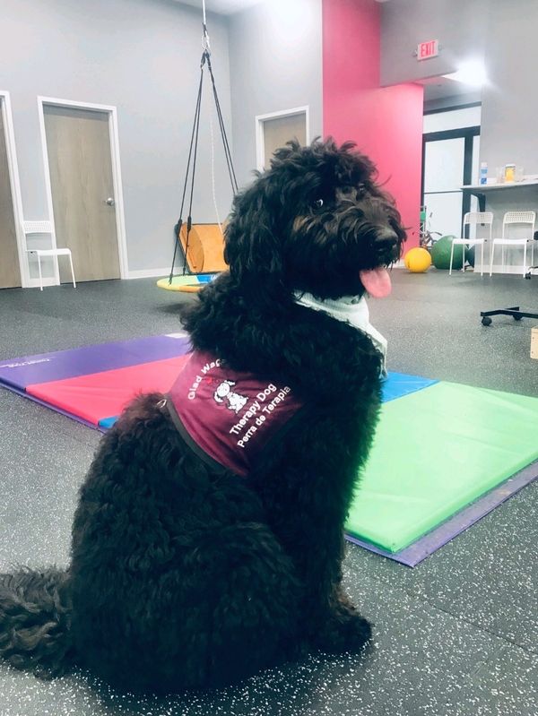 Pippin had a rough start to her life after needing a double hip replacement. Glad Wags training really helped me meet Pippin where she was at post-surgery to provide her the needed support to jump right into being a facility dog. We have had the best of both worlds with group training that provides opportunity to learn with others, as well as individualized help to allow Pippin to learn exactly what she needs to know. I work with several nonverbal kids at my job as a speech therapist. Even though Marj wasn't familiar at all with the system of communication that we use, she helped me teach Pippin how to recognize pictures of toys and then go find them when shown, so that even my nonverbal children can participate with her in therapy sessions. Pippin and I are so grateful for all the training tips to help her engage with my therapy sessions!
